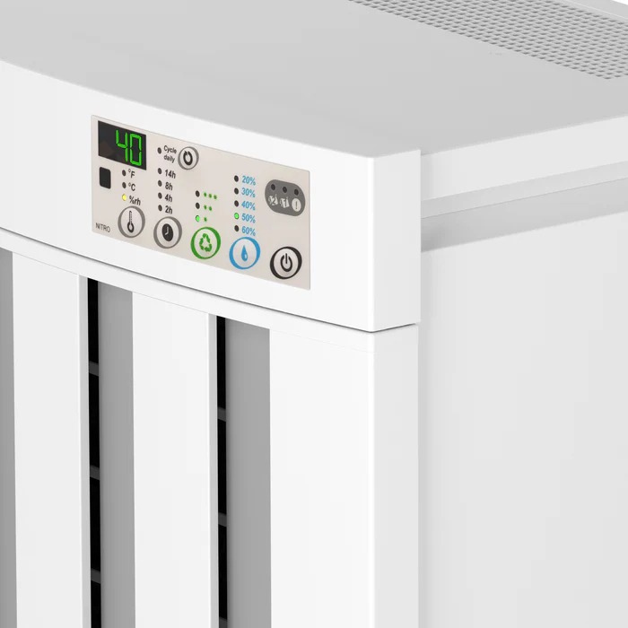 EcoAir Droid is een professionele adsorptiedroger met een hoge ontvochtigingscapaciteit tot 25 liter vocht per dag. Zijn grote temperatuurbereik onderscheidt hem van andere professionele luchtdrogers, hij droogt efficiënt bij een omgevingstemperatuur van -5°C tot 40°C. Dit grote temperatuurbereik maakt hem geschikt voor elk jaargetijde en voor onverwarmde ruimtes én verwarmde ruimtes. Droid is minder gevoelig voor uiterste omgevingstemperaturen dan een professionele condensatiedroger dat is. Hij is perfect voor krachtige luchtontvochtiging in musea, kunstgalerijen, garages, kantoren, kelders, spa's, zwembaden, sportscholen, hotels, kleedkamers, bibliotheken, supermarkten, boekwinkels, magazijnen en meer.