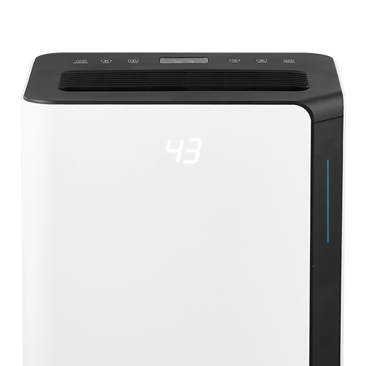Kodiak 20L heeft een luchtvochtigheidsindicator die in 3-kleuren duidelijk aangeeft hoe hoog de luchtvochtigheid in de ruimte is. Vanaf een afstand zie je direct of de luchtvochtigheid, hoog, gemiddeld of laag is. De exacte waarde toont de ontvochtiger op zijn display in het bedieningspaneel.
