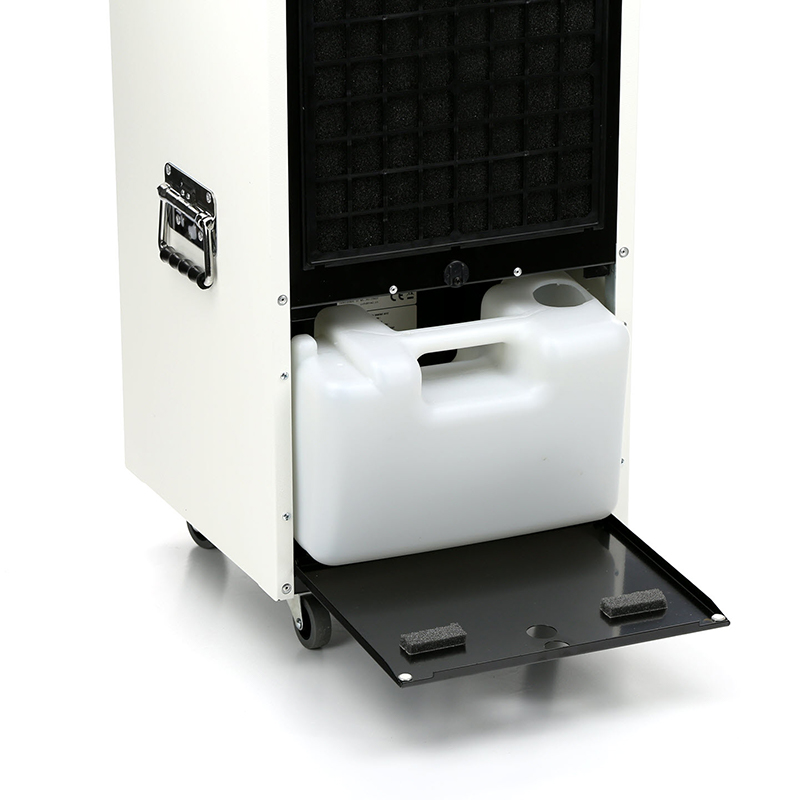 Zeer van toepassing voor de zwaarste werkzaamheden en uitgevoerd met een verstelbare luchtvochtigheidsmeter. De mobiele ontvochtiger heeft een sterk framewerk en omkasting van metaal. Geschikt voor het drogen van een ruimte met een ruimtetemperatuur vanaf 0.5 °C.